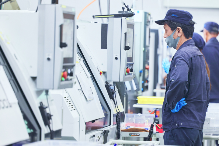 遠藤製作所は、国際的な航空宇宙産業向け品質マネジメント規格である「AS9100(JISQ9100)/ISO9001※」の認証を取得し、医療機器部品製造で培った高度な技術力と品質保証体制を活かして、航空機分野へと事業を展開しています。材料調達から製造工程設計、金型製作、鍛造、機械加工、研磨、検査の工程を自社内で完結する一貫生産体制を確立。これにより、安定した品質と製品供給と柔軟な対応を可能にしています。