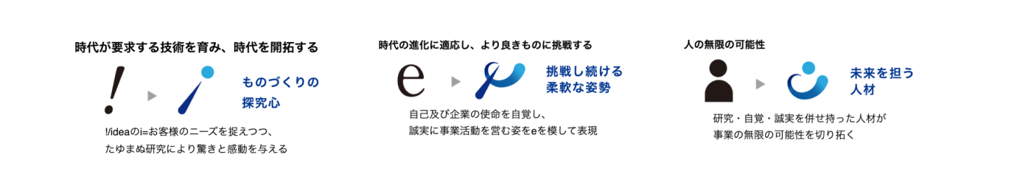 この3つの言葉は、ただのスローガンではなく、「無限の事業可能性」と「持続的な企業成長」を支える原動力そのものです。