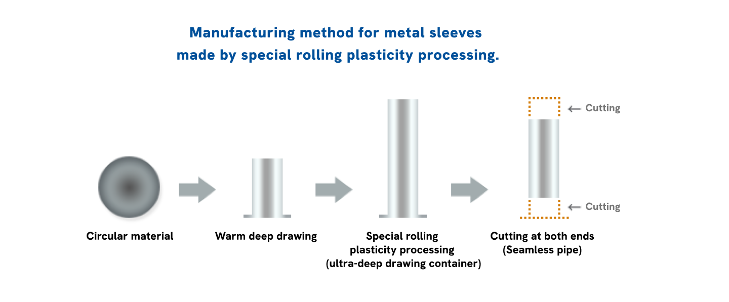 We manufacture a variety of parts utilizing “Metal Sleeve*,” our proprietary 10-µm ultra-thin seamless metal pipe.