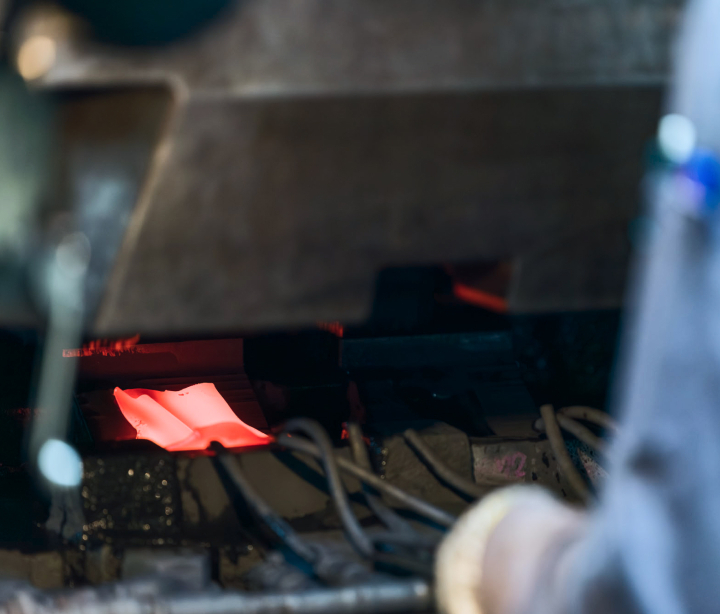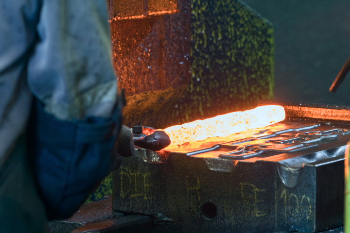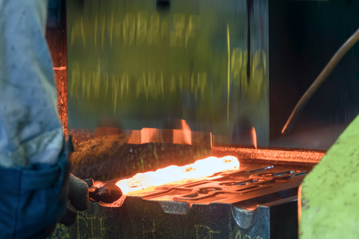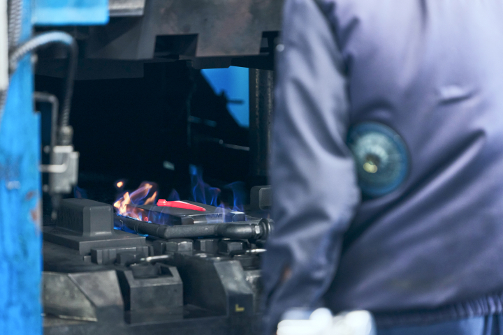 Forging is a processing method in which metal is heated and pressure is applied to form it into the desired shape. It was traditionally used in making swords and hoes, but today is widely used for manufacturing the precision parts that support the development of various industries, including for automobiles, aircraft, medical devices, and construction machinery.